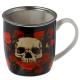 Skulls [&] Roses Totenkopf Tasse aus Porzellan mit Teeei und Deckel