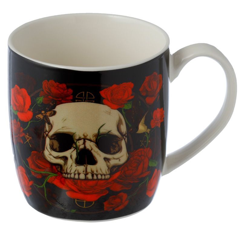 Skulls & Roses Totenkopf Tasse aus Porzellan mit Teeei und Decke